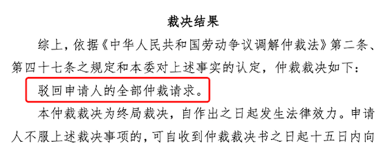 還有最近辦理的一個(gè)案件,筆者代理用人單位,最終駁回了勞動(dòng)者的全部仲裁請(qǐng)求。