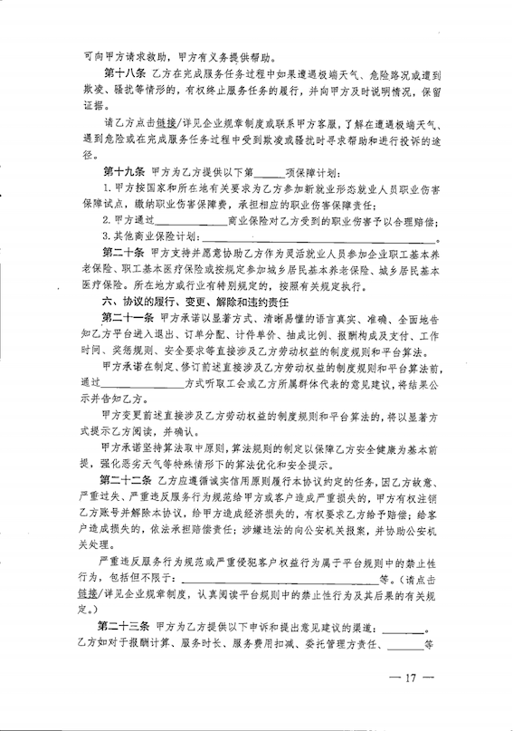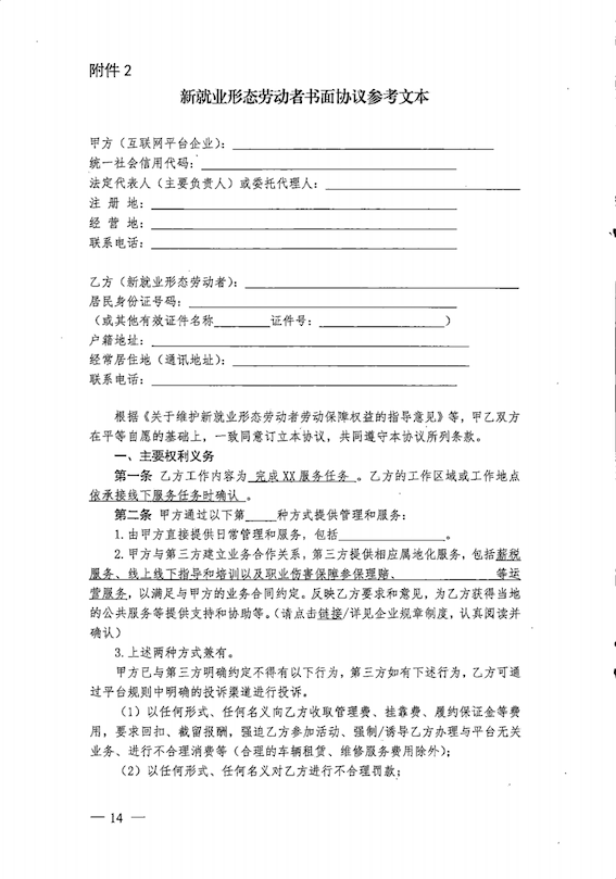 《新就業形態勞動者勞動合同和書面協議訂立指引(試行)》